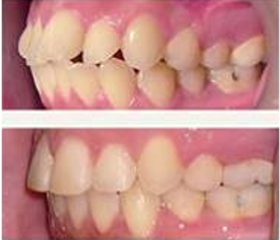A very common situation where the upper teeth (on this patient's left side). Typically, crossbites are corrected by expanding the upper jaw, a simple procedure in children in children and early teens, a difficult one in older teens and adults. One of the best reasons to see an orthodontist early.